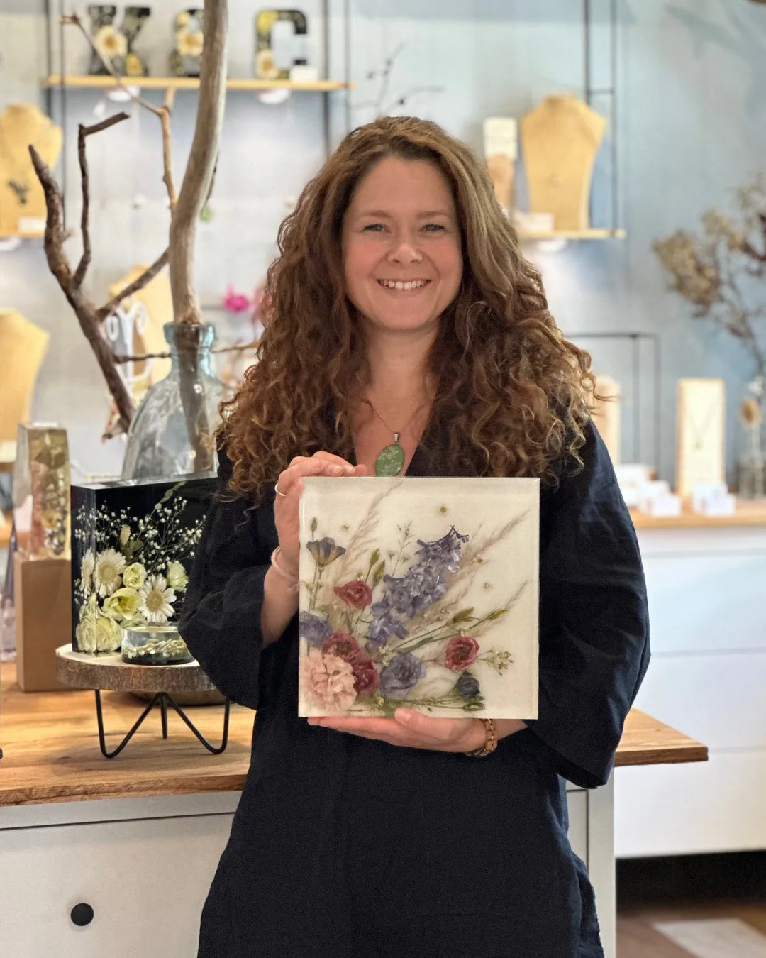 Dieses Handwerk ist sehr vielfältig und es gibt eine Menge Aufgaben. Vom Blüten sammeln und trocknen über das Anfertigen von Silikonformen, dem Schleifen und Polieren der Schmuckstücke.